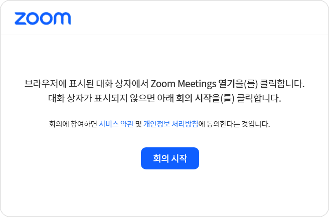 팝업에서 Zoom Meeting 열기 버튼 클릭